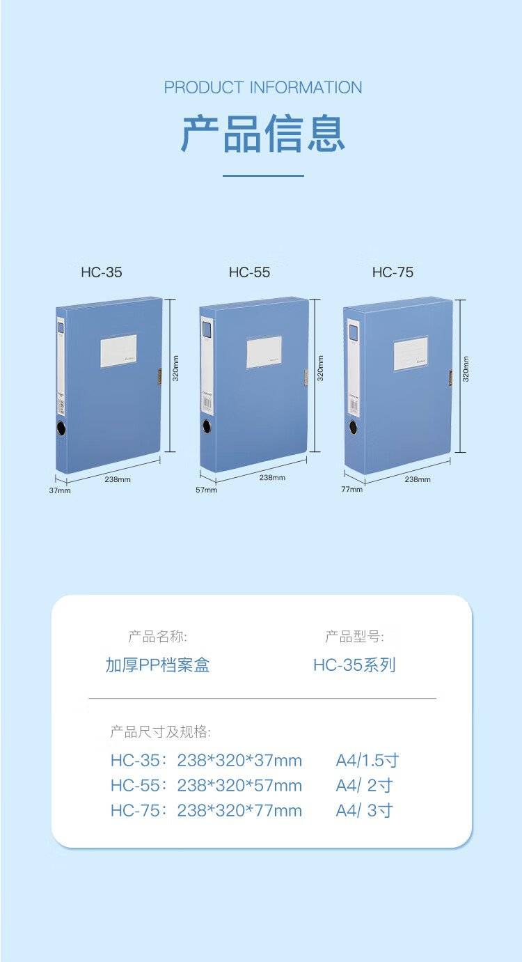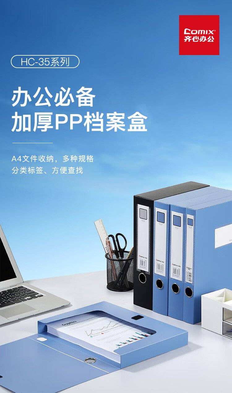 齐心(Comix) 35mm加厚型粘扣档案盒/文件盒/资料盒A4 蓝色HC-35
