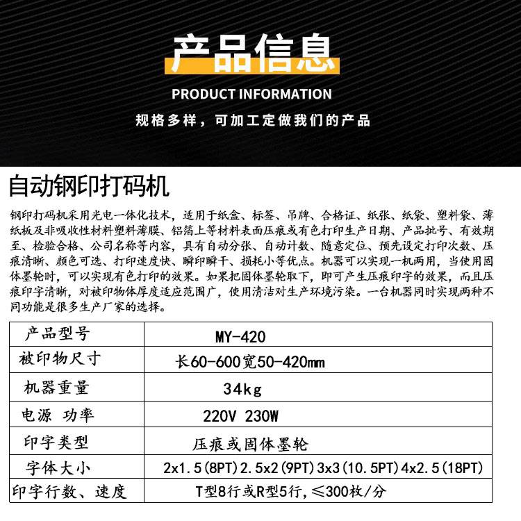 拜德包装 MY-420自动分页钢字压痕机 纸药盒卡片吊牌生产日期批号