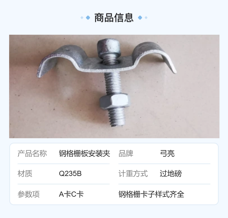 钢格栅板安装夹G:B-30 弓亮镀锌Q235B 不锈钢 卡子 使用简单坚固耐用