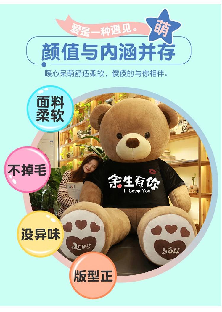 大熊公仔泰迪熊猫毛绒玩具抱抱熊玩偶布娃娃女孩睡觉抱枕生日礼物