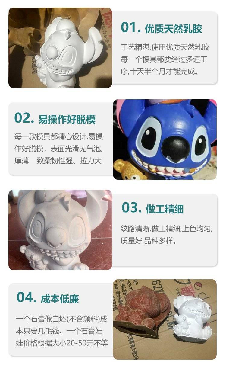 亚特石膏 公园史迪仔涂鸦玩偶 高强白 DIY模具制作 脱模快