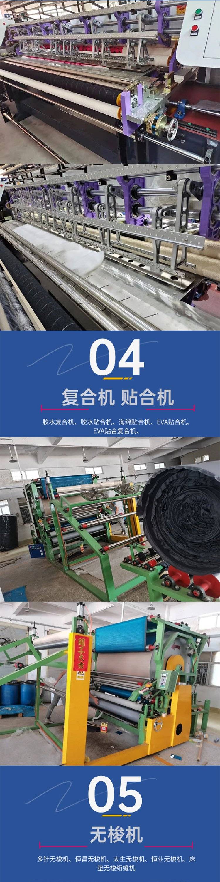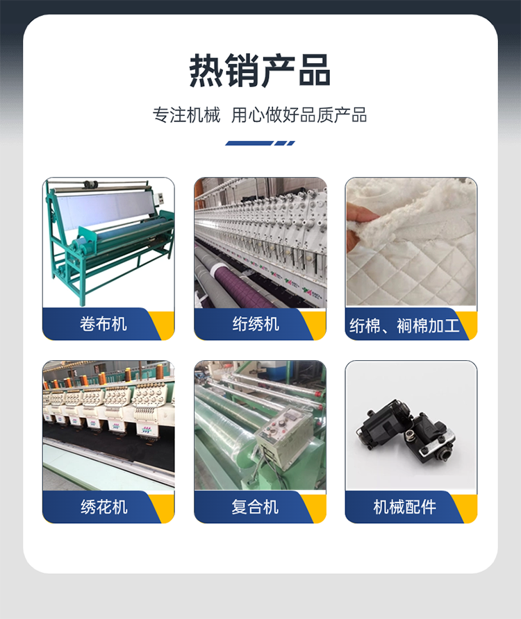 加工:绣花,裥棉,绗绣,棉制品,销售,绗绣机,多针绗缝机,多针无梭机,绣花机,刺绣机,贴合机,卷布机,激光镭射机,货物或技术进出口