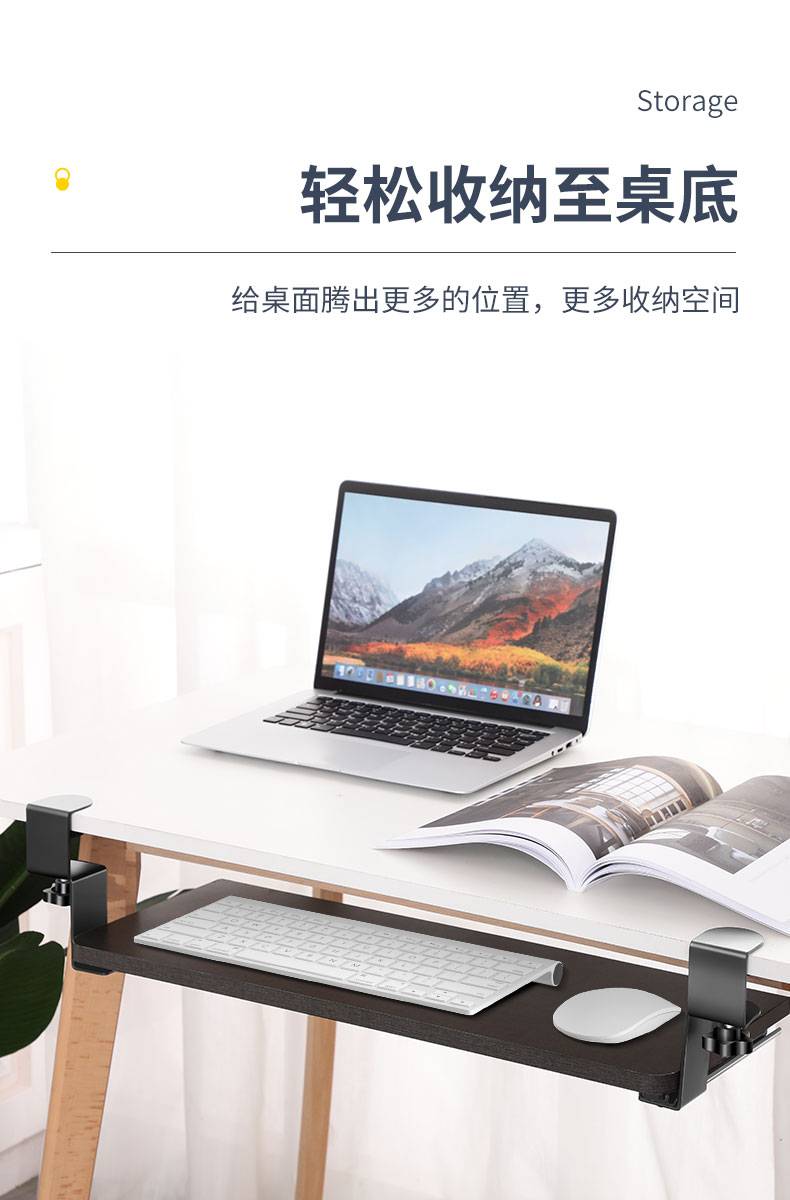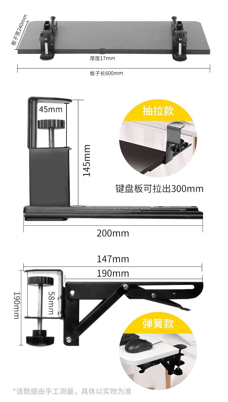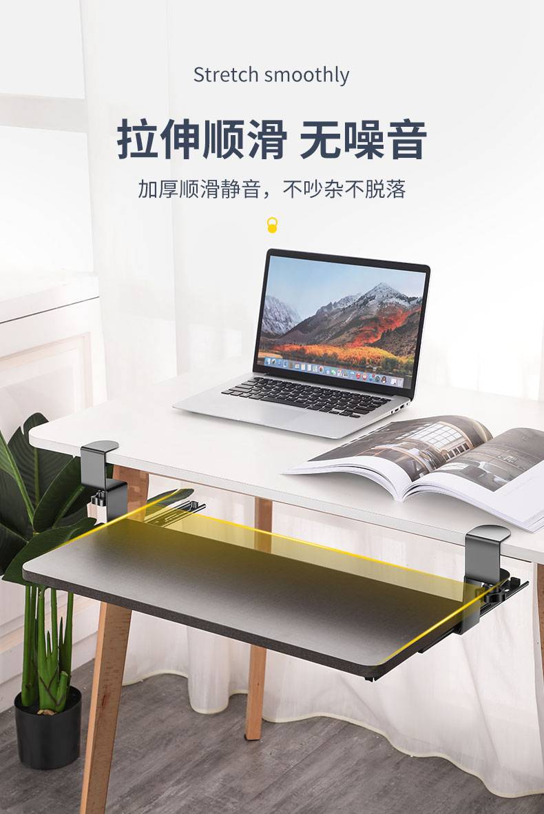 免打孔电脑键盘托架办公桌加装抽屉滑道滑轨夹桌下鼠标抽拉托盘