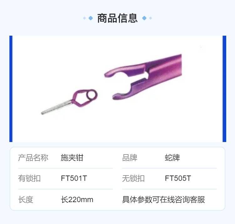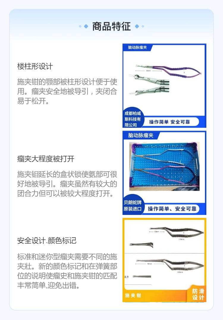 蛇牌电脑控制闭合力施夹钳钛合金脑动脉瘤夹