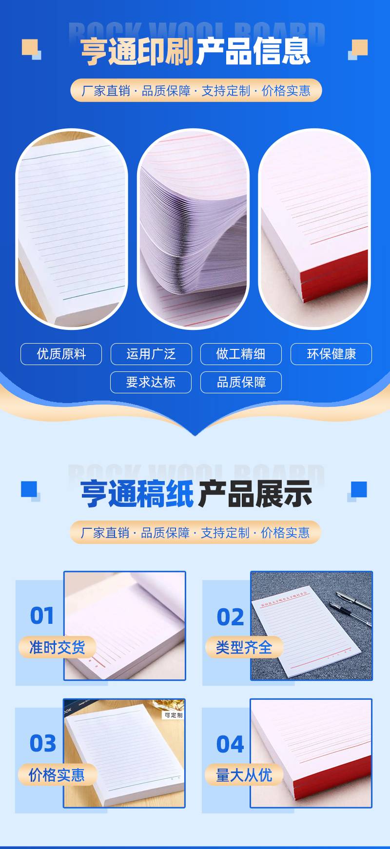 亨通印务 稿纸印刷 村委学校企业公司抬头纸信笺便签本定做