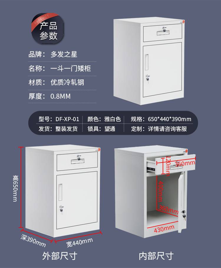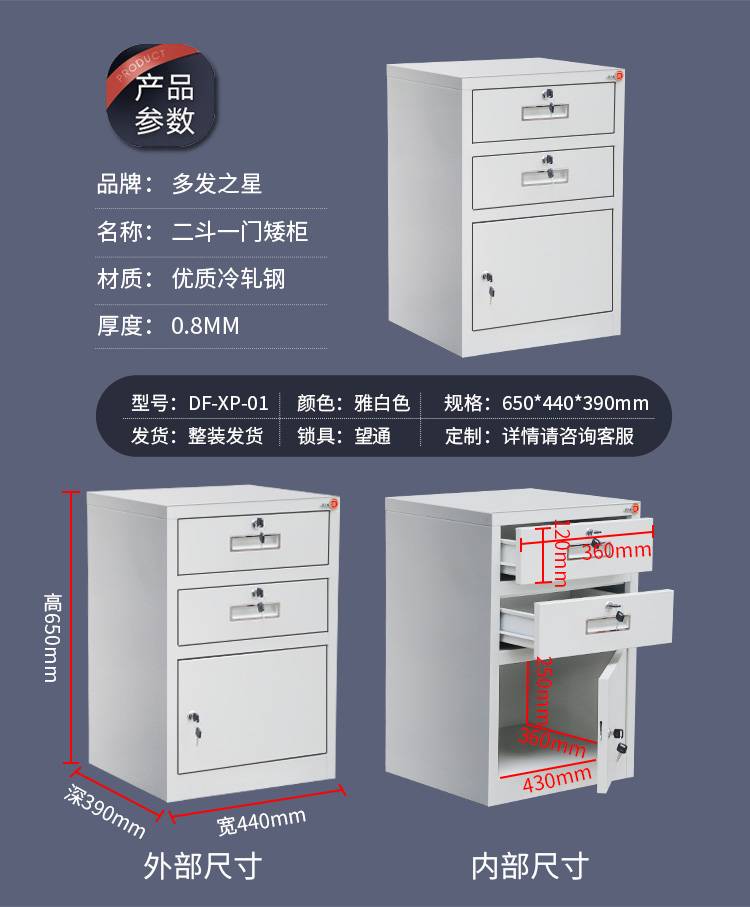 办公室桌面文件柜 带锁可移动钢制矮柜 加厚资料柜可定做