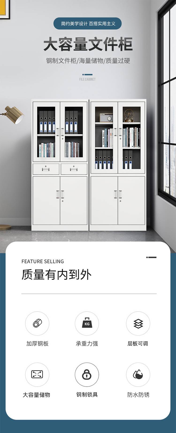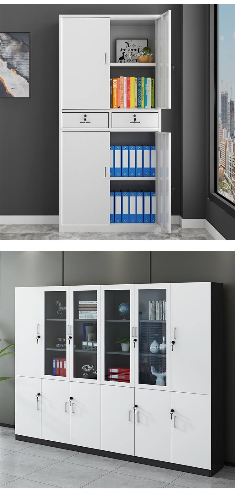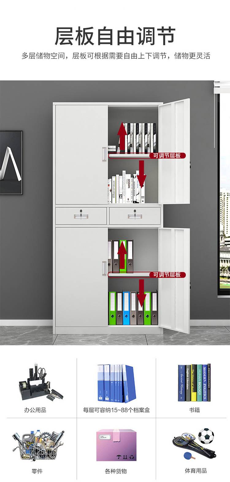 铁皮文件柜 办公资料柜 五节档案柜 钢制中二斗 鑫谱 生产厂家