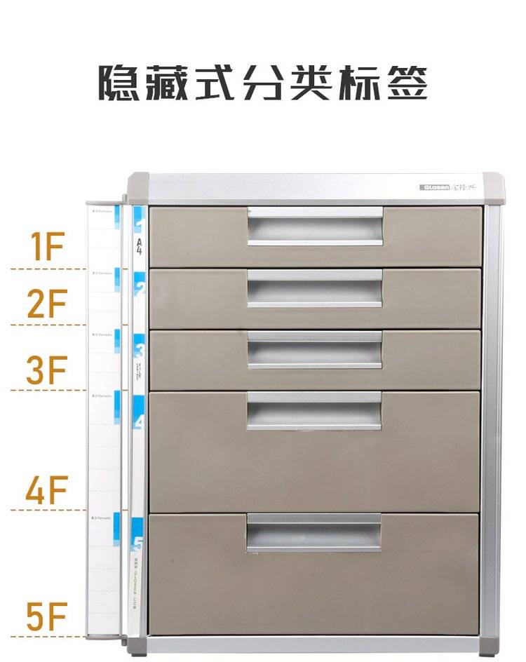 金隆兴桌面文件柜金属铝合金框办公室商务桌上文件柜抽屉式带锁a4文件夹收纳柜多层四五层分类收纳资料整理柜
