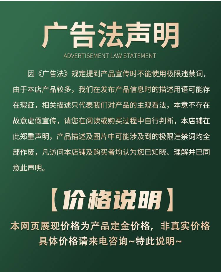 特别提示:商品详情页中(含主图)以文字或者图片形式标注的抢购价等价格可能是在特定活动时段下的价格,商品的具体价格以订单结算页价格为准或言是您与商家联系后协商达成的实际成交价格为准;如您发现活动商品价格或活动信息有异常,建议购买前先咨询商家。