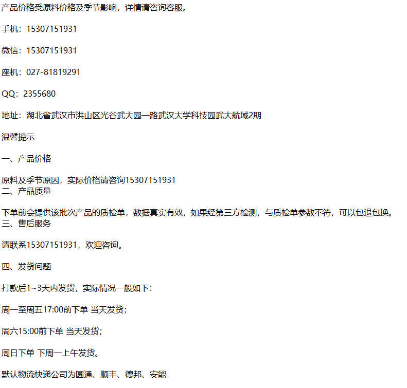 价格:向品在花生壳b2b外贸信息平台的展示标价,县体的成文价情可能因向品参加活动考情况发生变化,也可能随者购买数量不同或所选规信不同而发生变化,如用户与向家线下达成协议,以线下协议的结算价格为准,如用户在花生壳b2b外贸信息平台上完成线上购买,则最终以订单结算页价格为准。
