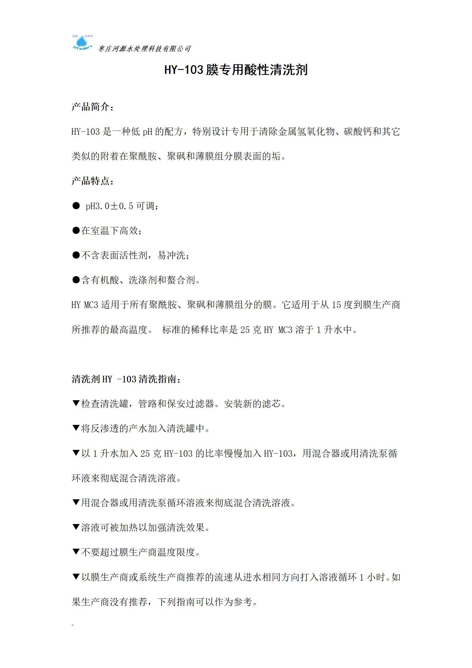 环泰化工 HY103膜专用酸性清洗剂 有机物污泥等附着物清洁阻垢