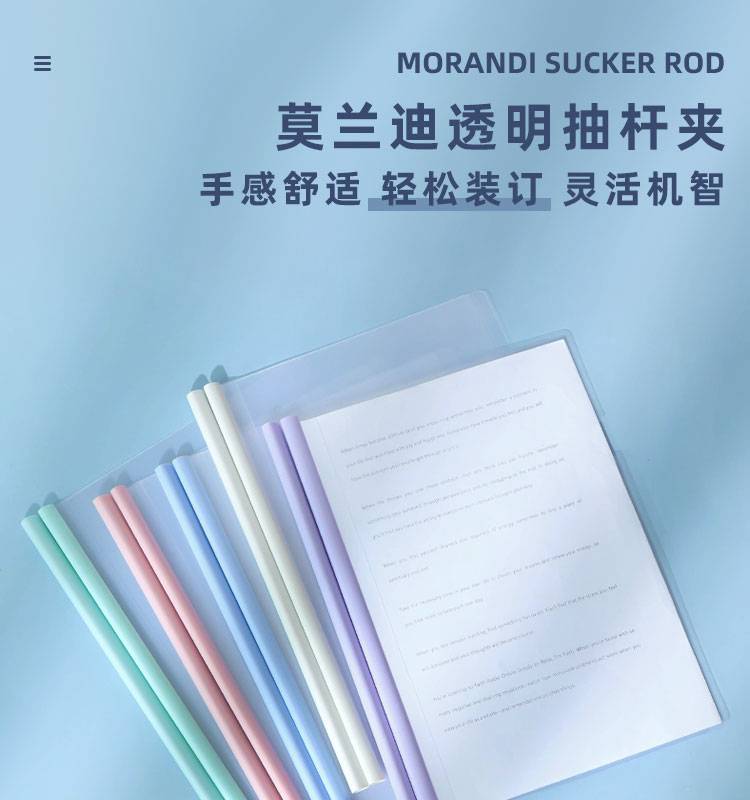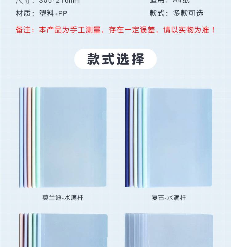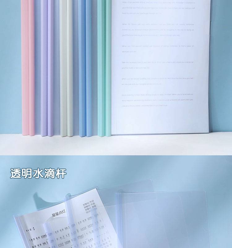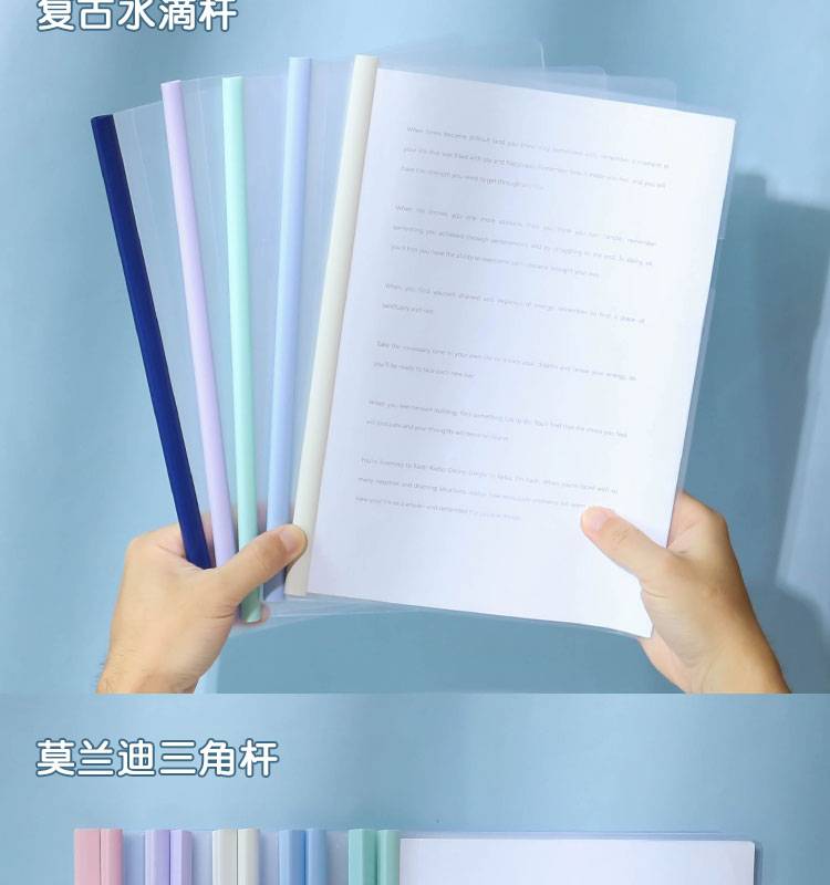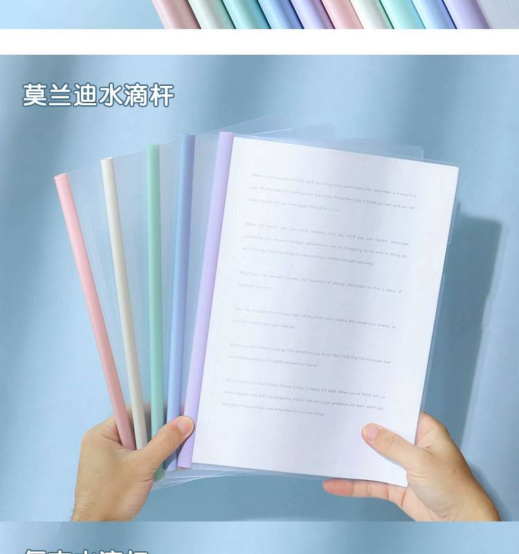 莫兰迪淡色系A4抽杆夹拉杆资料夹会议报告试卷学生水滴透明文件夹