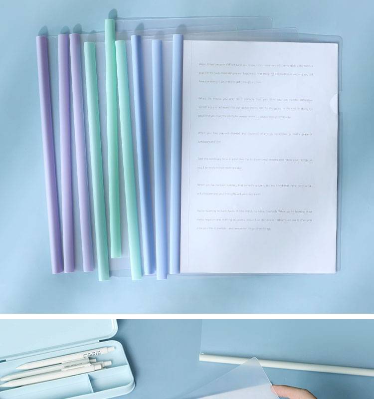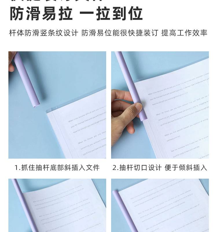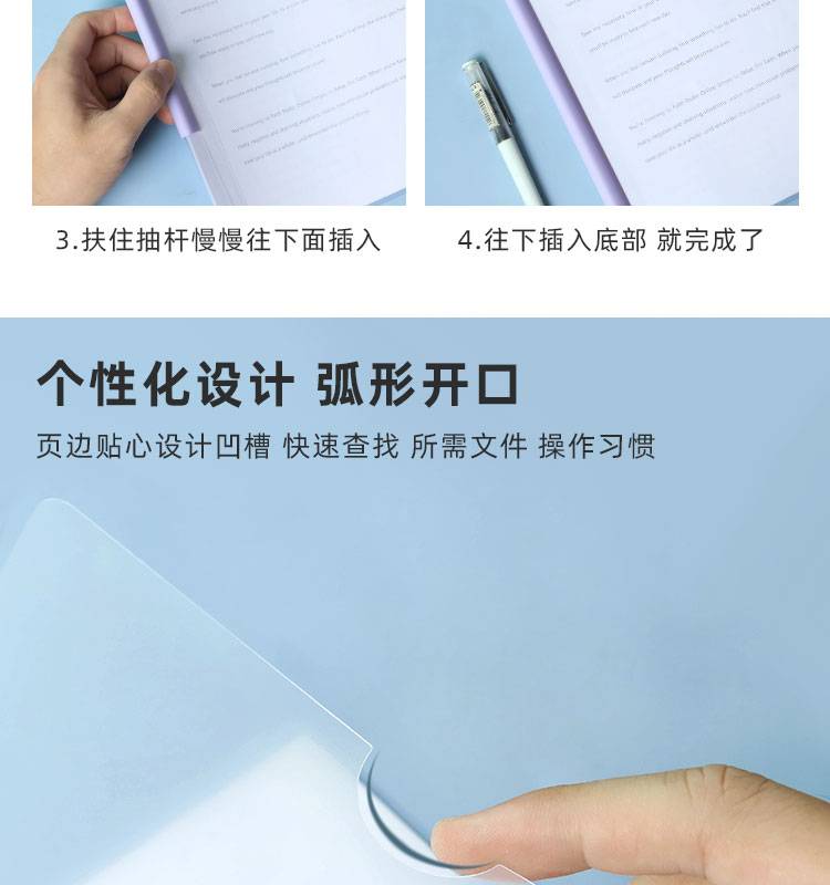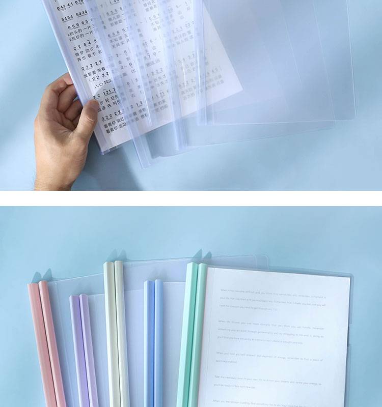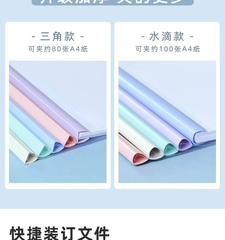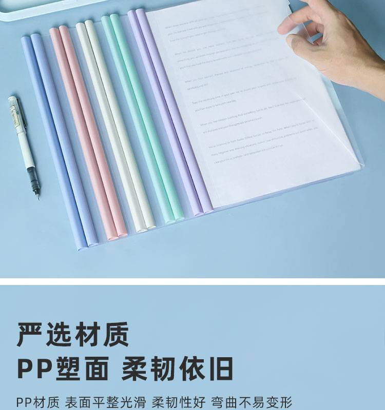 莫兰迪淡色系A4抽杆夹拉杆资料夹会议报告试卷学生水滴透明文件夹