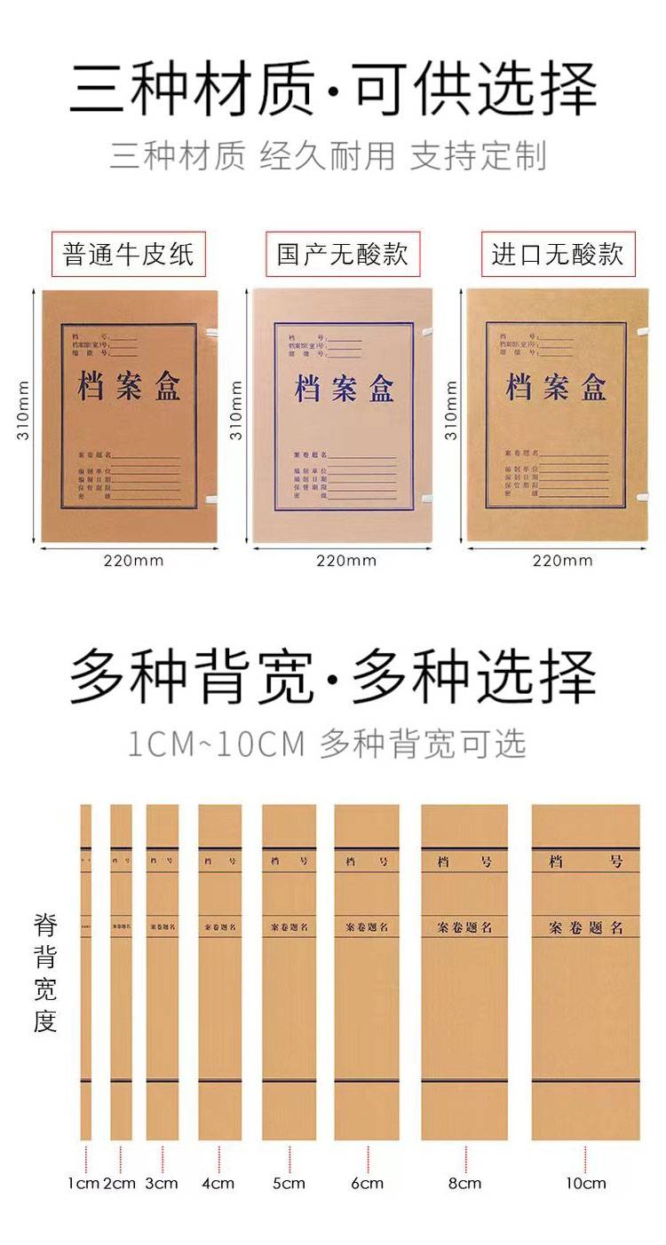 20个卷宗封面 无酸纸牛皮纸 1-6cm归档卷宗夹 支持定制