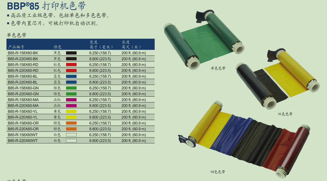 brady贝迪BBP85打印机色带 Powermark 2508A通用碳带B85-R10000