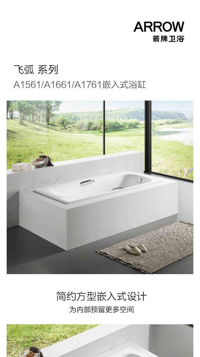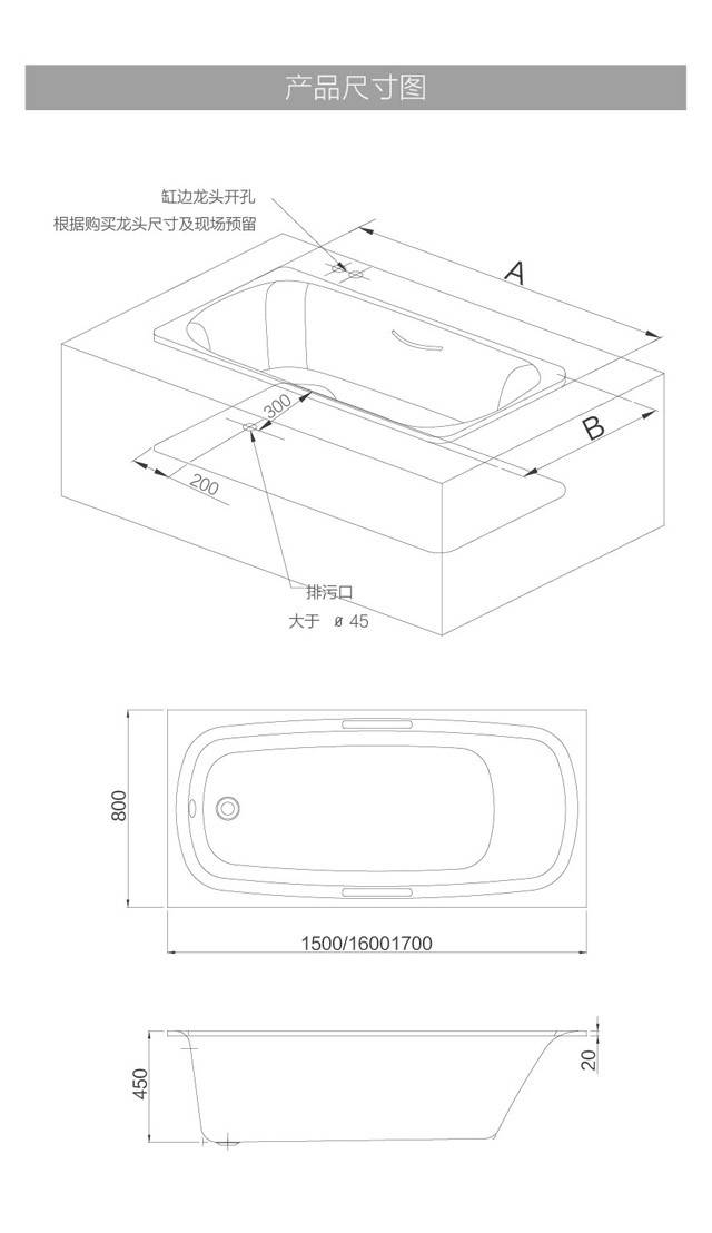 嵌入式加厚亚克力浴缸 洗澡方形1.5米1.7米1.6米 单人浴池浴盆A1761