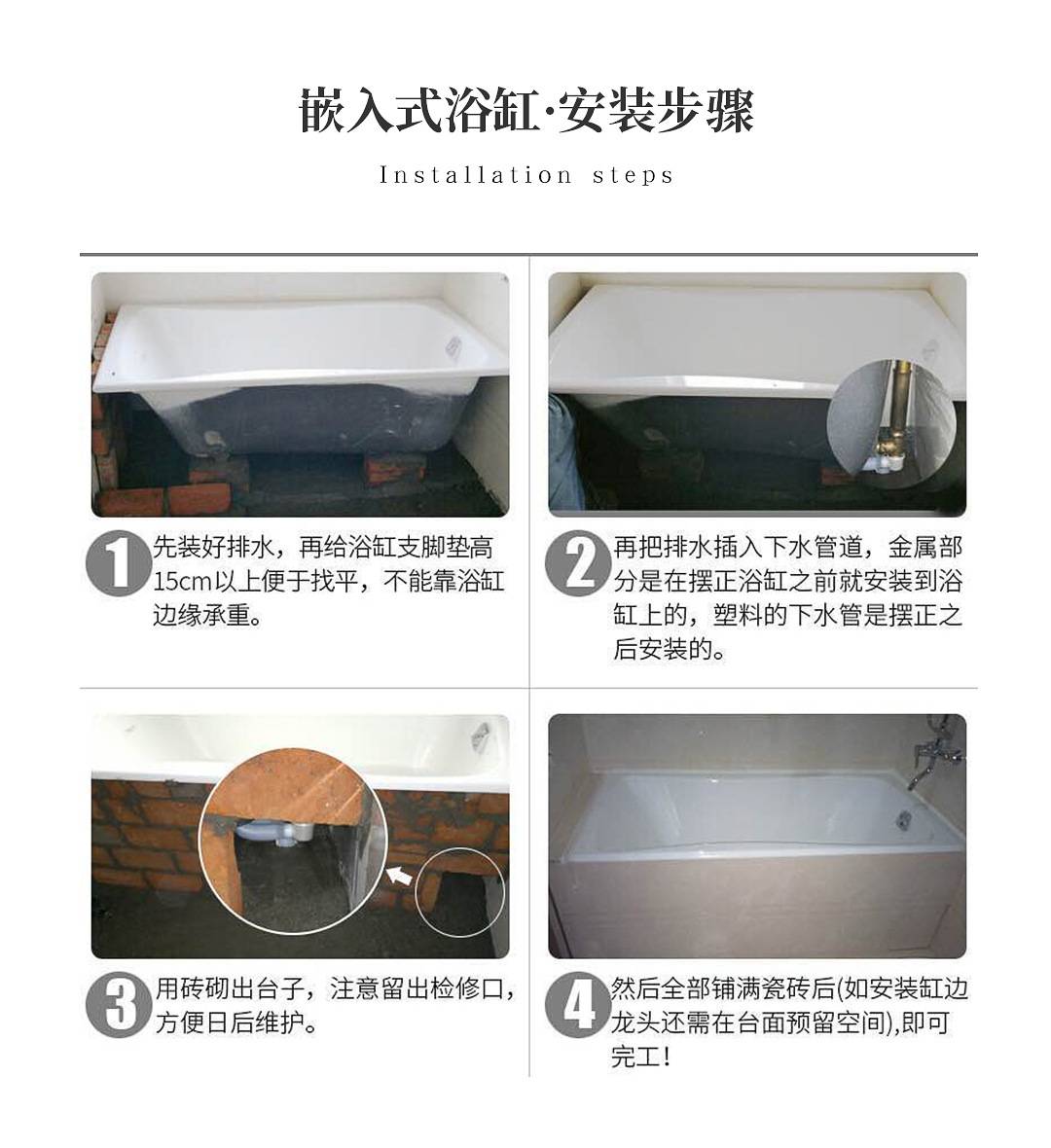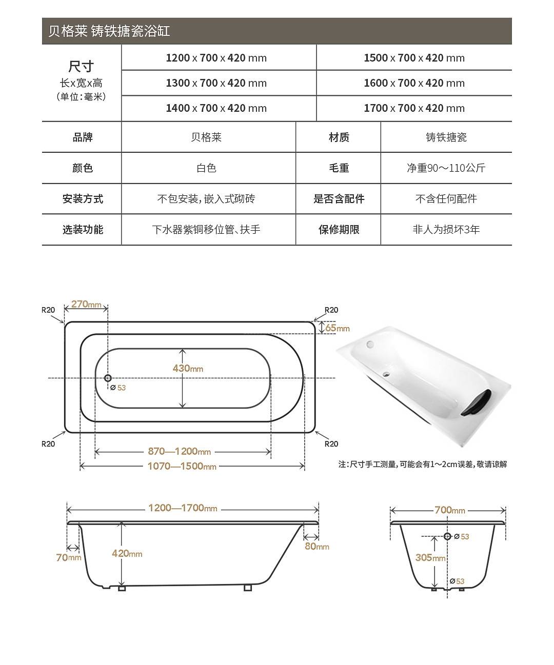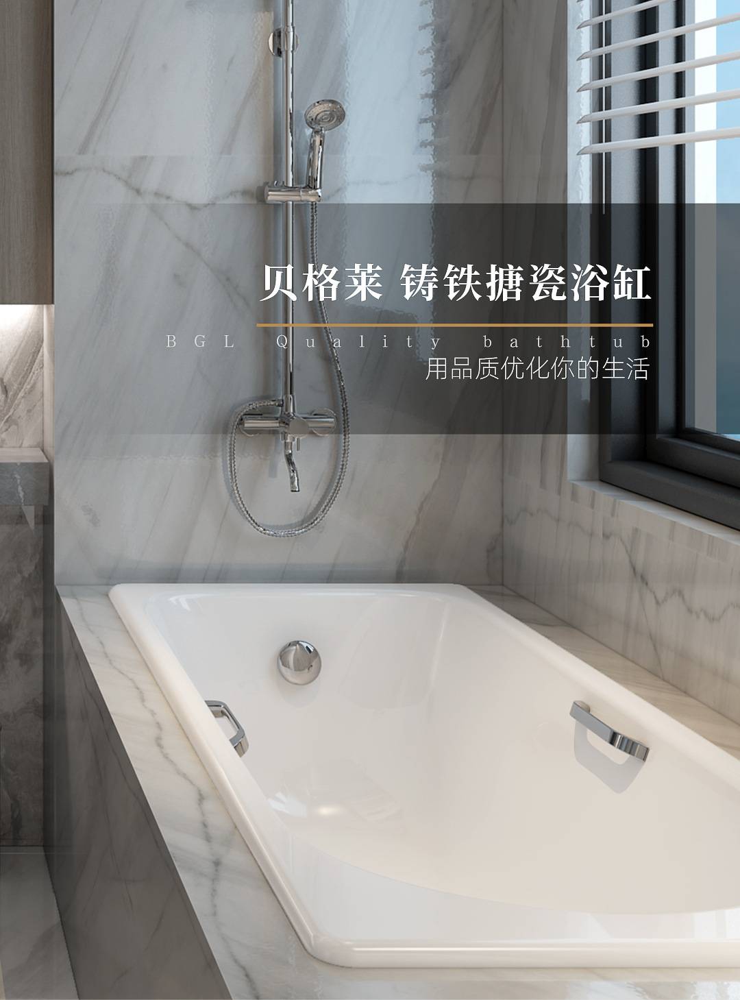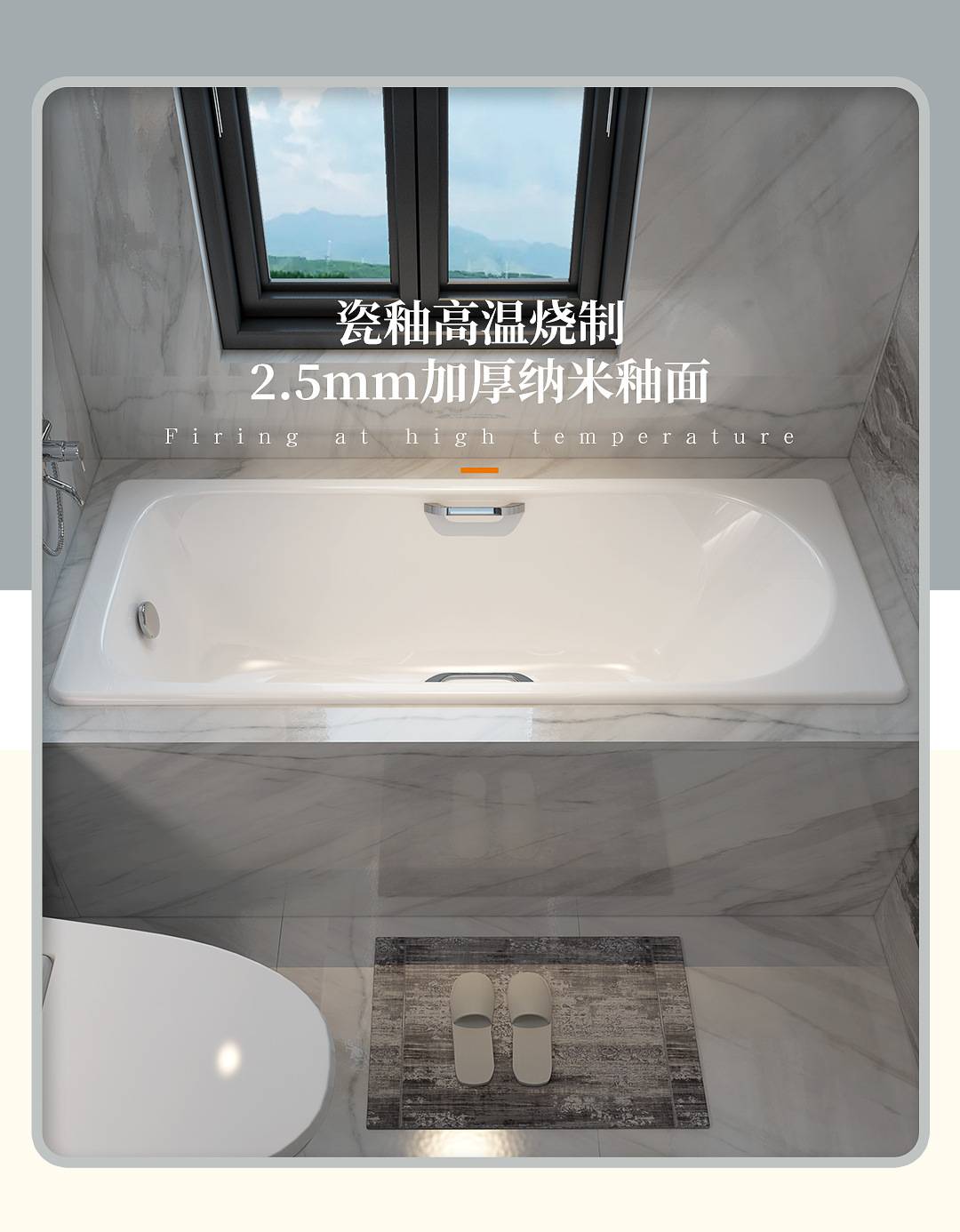 卫生间单人方形泡澡铸铁陶瓷嵌入式浴缸家用小户型成人搪瓷贝格莱