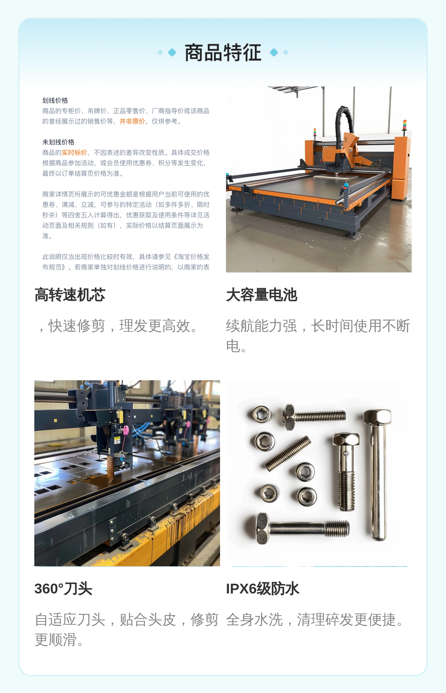 特别提示:商品详情页中(含主图)以文字或者图片形式标注的抢购价等价格可能是在特定活动时段下的价格,商品的具体价格以订单结算页价格为准或言是您与商家联系后协商达成的实际成交价格为准;如您发现活动商品价格或活动信息有异常,建议购买前先咨询商家。