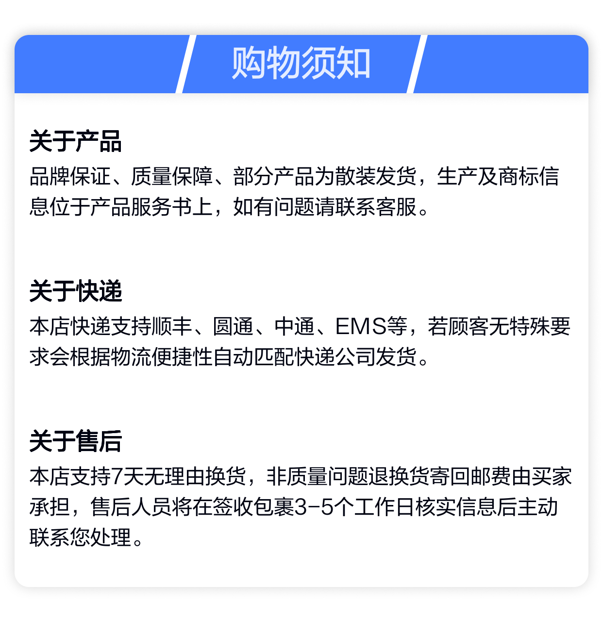 特别提示:商品详情页中(含主图)以文字或者图片形式标注的抢购价等价格可能是在特定活动时段下的价格,商品的具体价格以订单结算页价格为准或言是您与商家联系后协商达成的实际成交价格为准;如您发现活动商品价格或活动信息有异常,建议购买前先咨询商家。