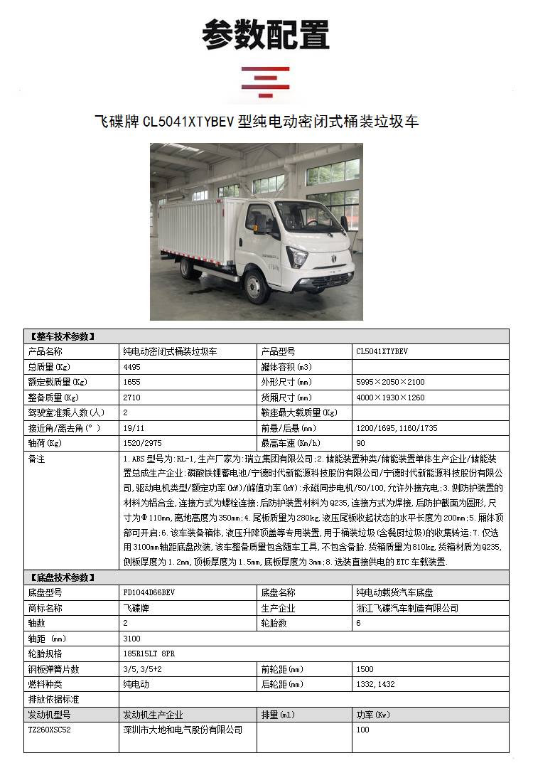 飞碟牌纯电动密闭式桶装垃圾车 新能源垃圾桶转运车 自装卸环卫车