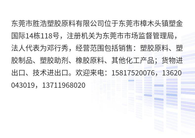 广东省东莞市东莞市胜浩塑胶原料有限公司塑金国际14栋118号