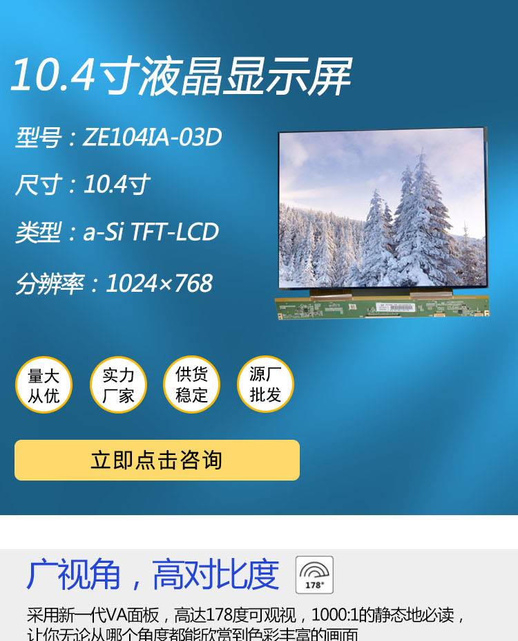 10.4寸TFT-LCD液晶玻璃ZE104IA-03D 便携式DVD1024×768 源头厂家