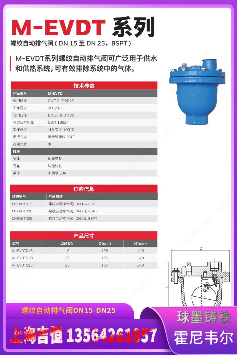 Honeywell霍尼韦尔螺纹自动排气阀M-EVDT系列