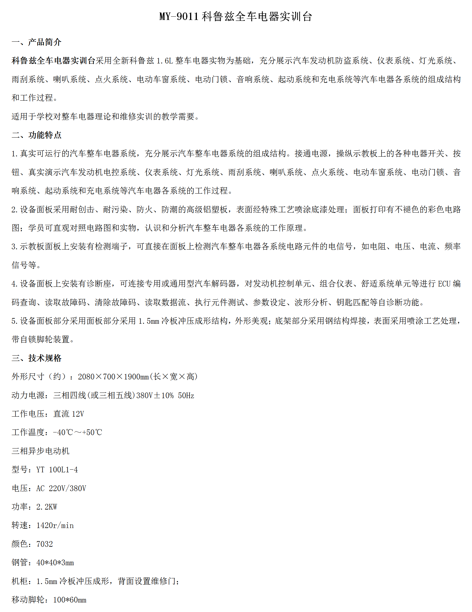 科鲁兹全车电器实训实验台 汽车整车电气实训装置 MY-9011