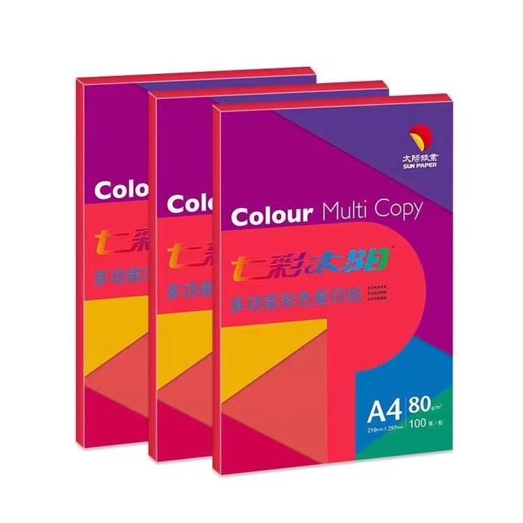 太阳纸业--七彩太阳a4-80g 单独小包装彩色打印纸 多功能复印纸