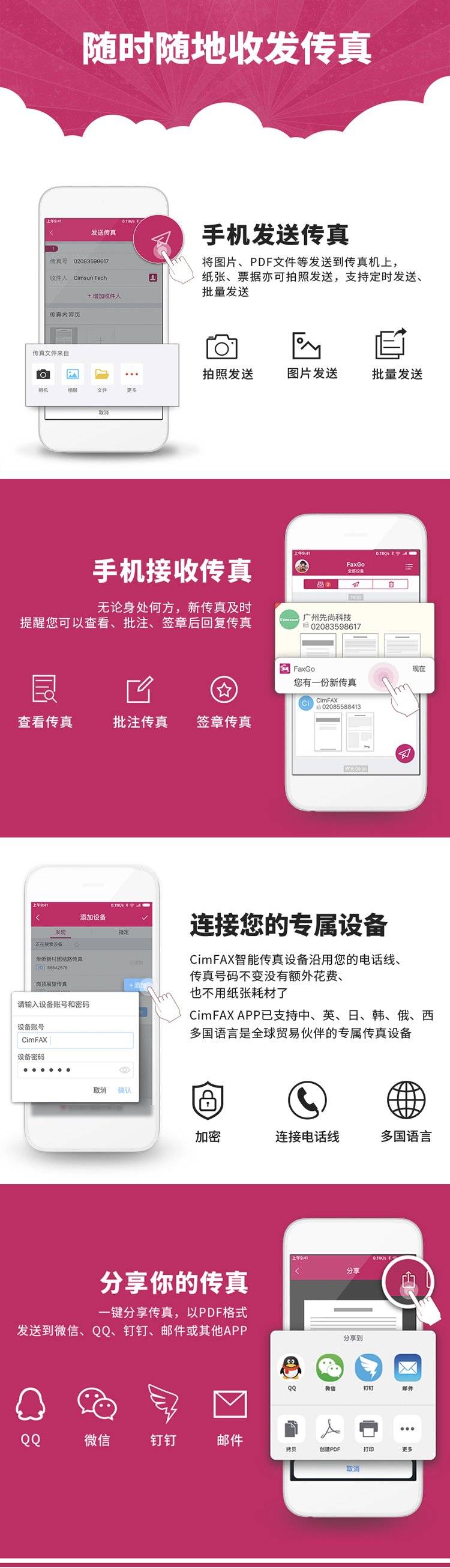 先尚(CimFAX)无纸传真机 4线版 支持A4幅面网络打印 黑色USB接口