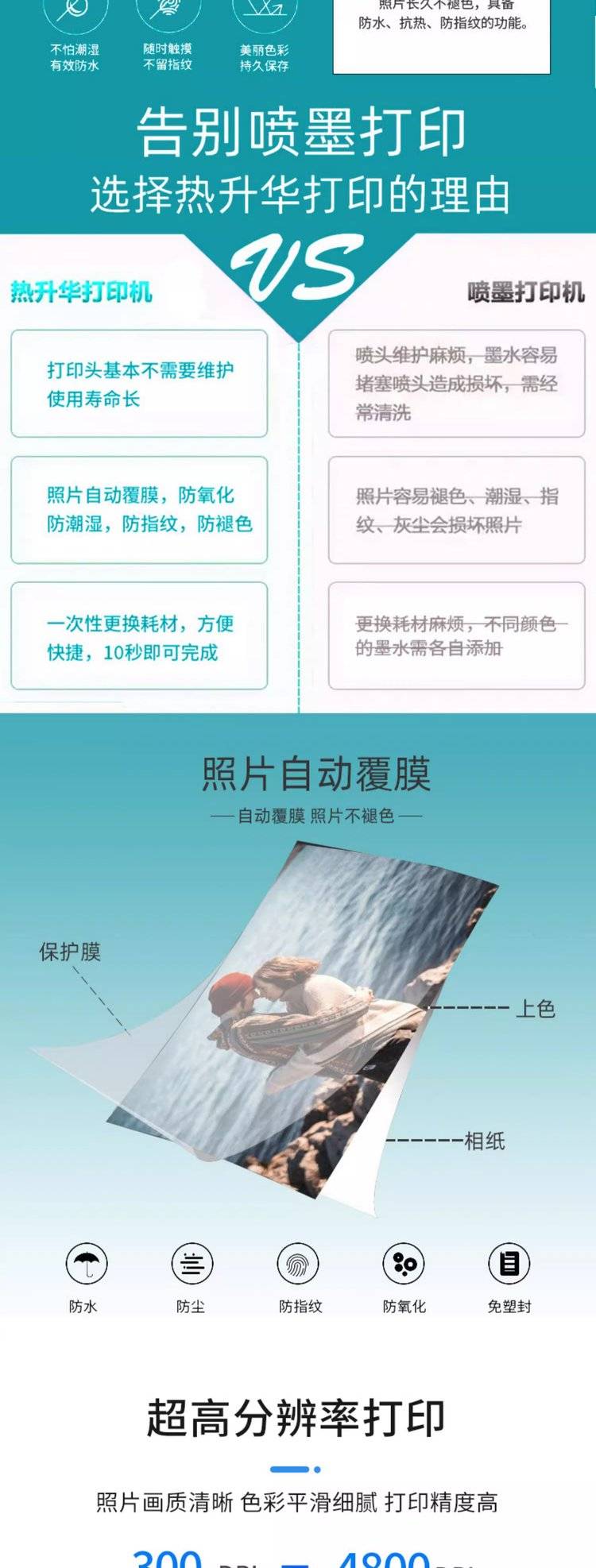 呈妍热升华打印机P720L打印相纸 6/7/8寸证件照生活照快照相片纸