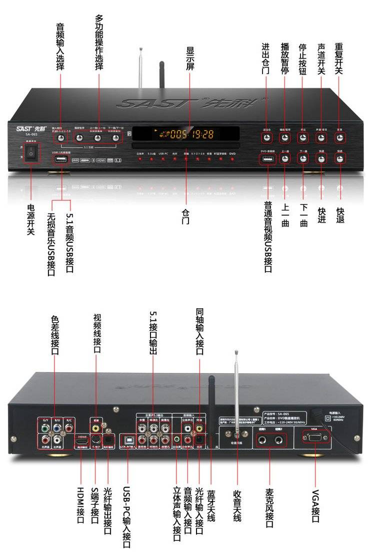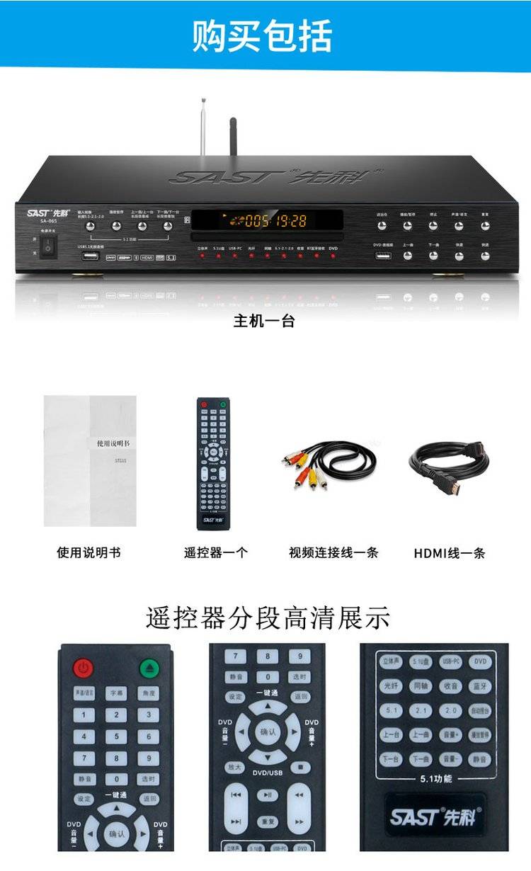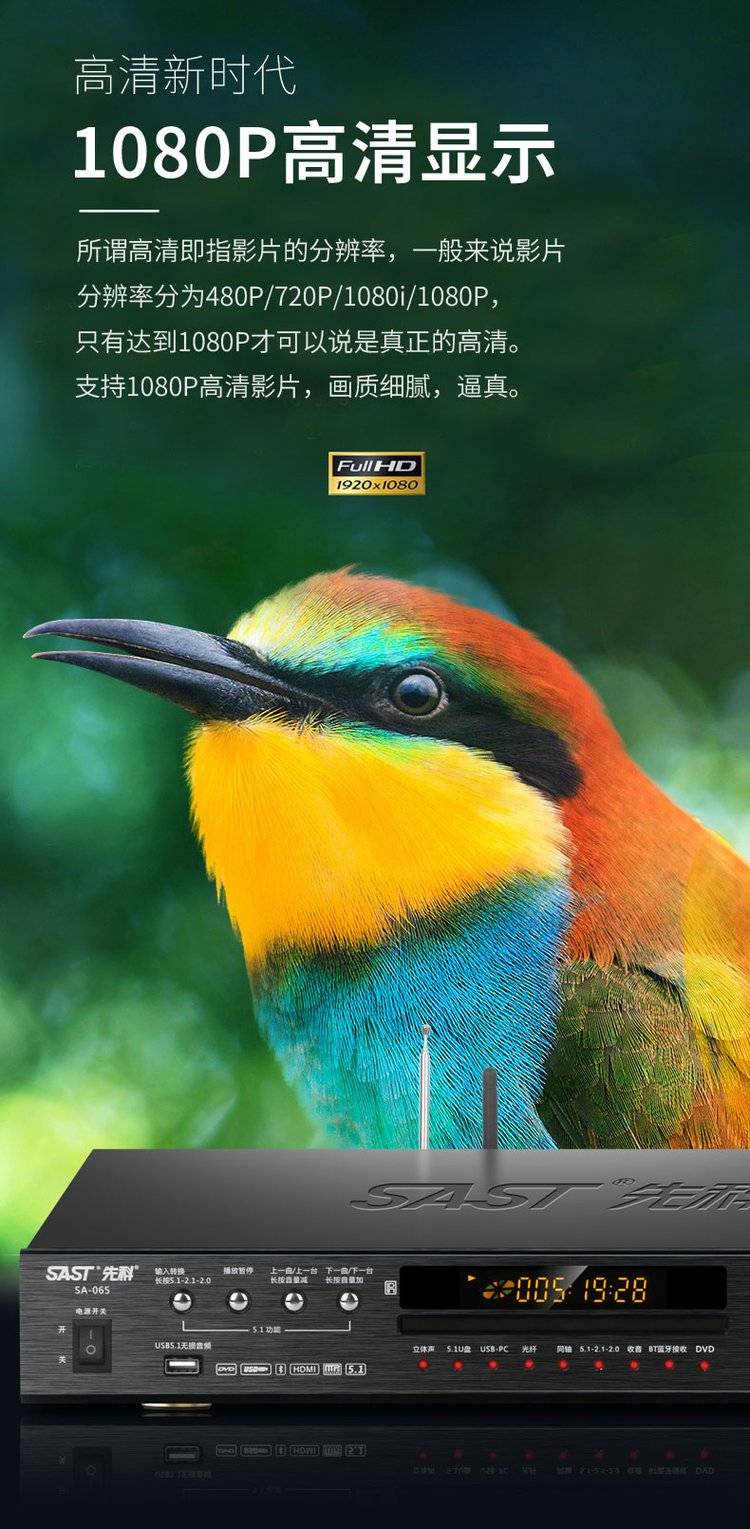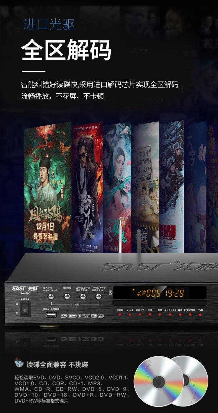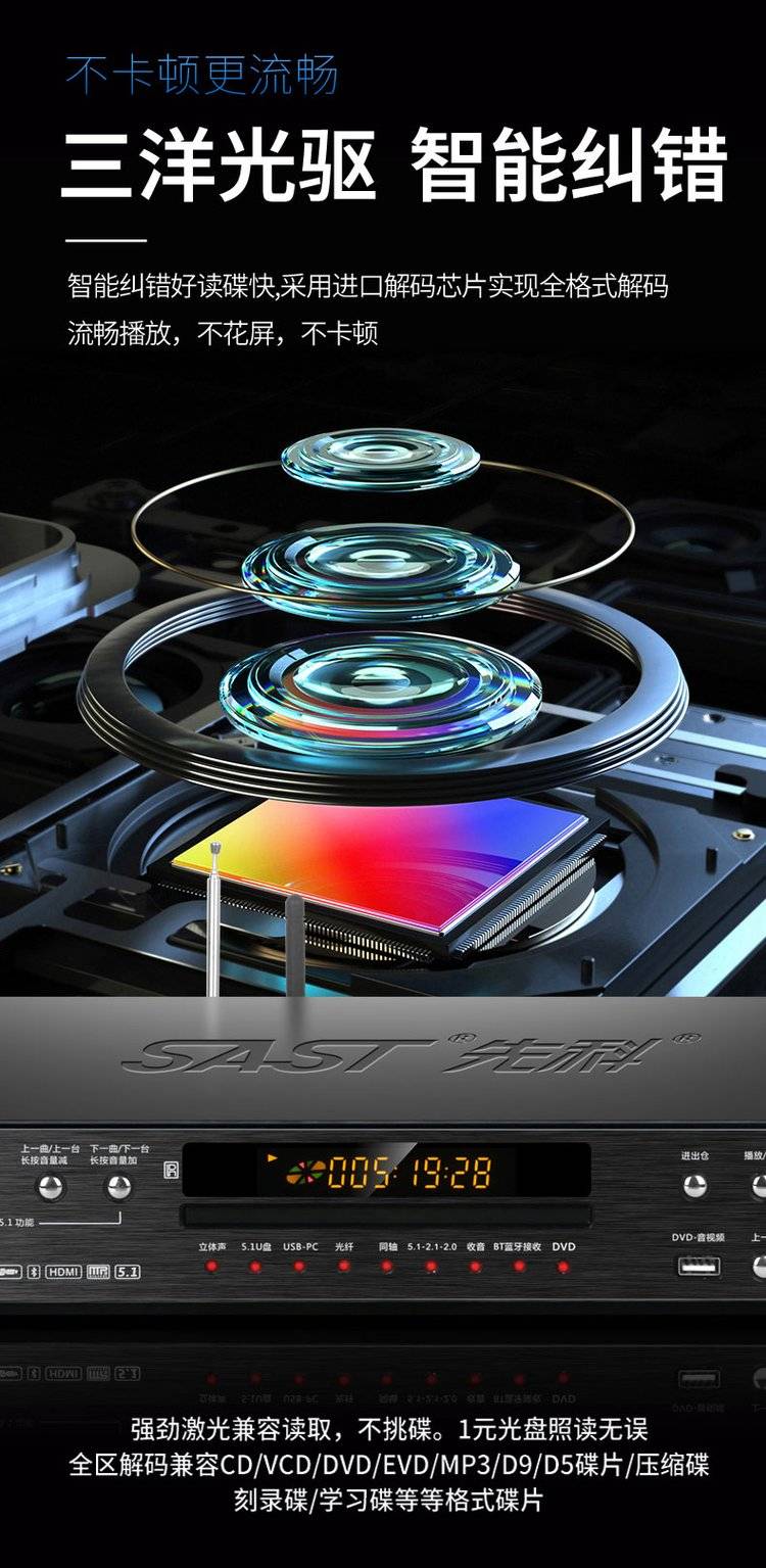 先科影碟机高清多功能播放机dvd机无损发烧播放器 一体机sast