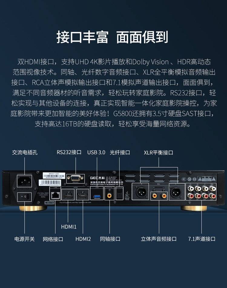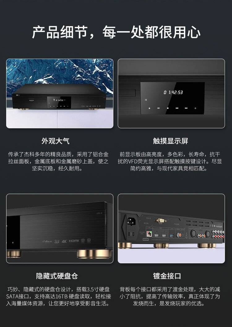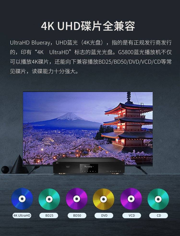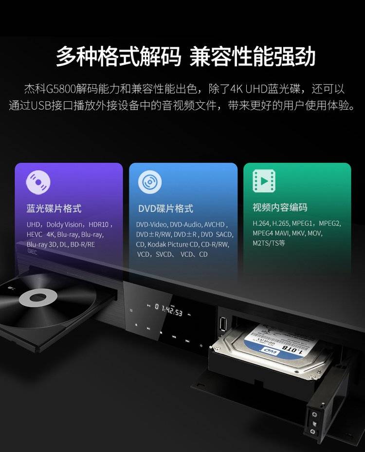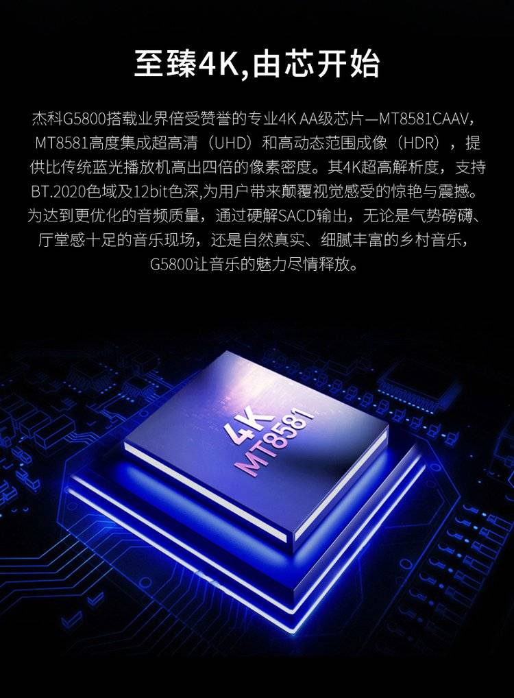 杰科BDP-G5800 4K UHD蓝光播放机dvd影碟机高清硬盘播放器家用HDR