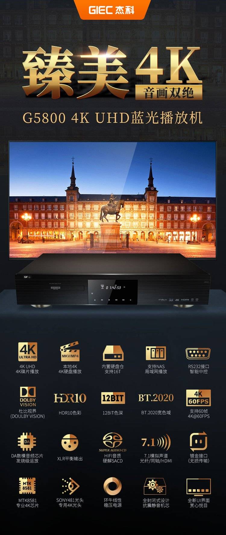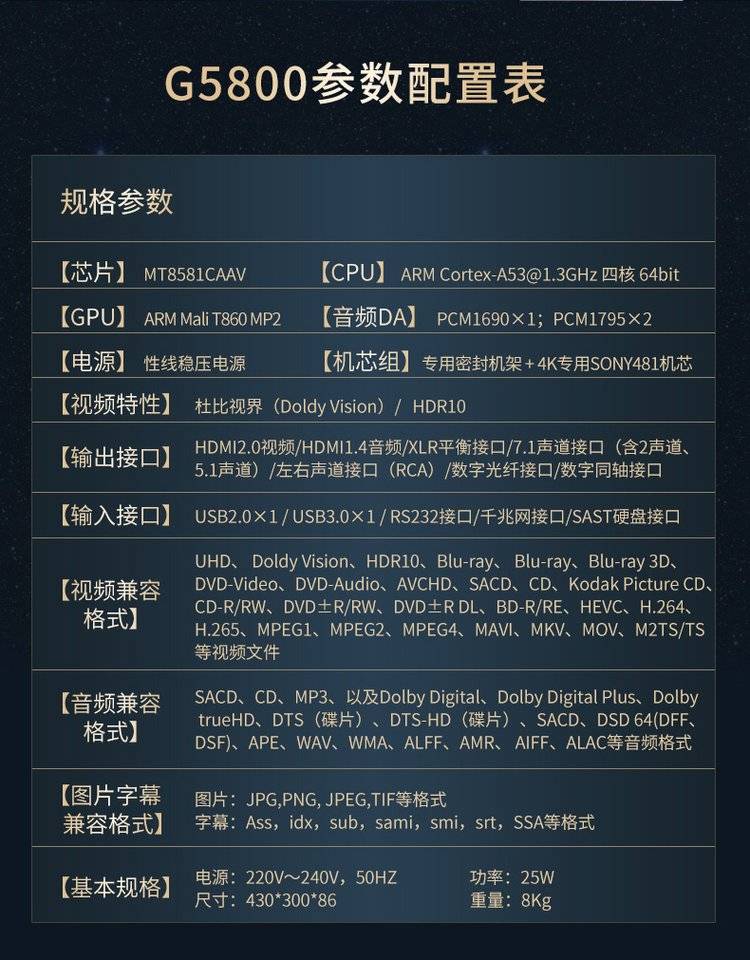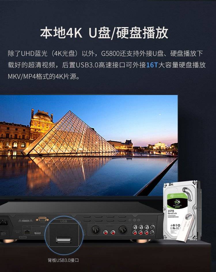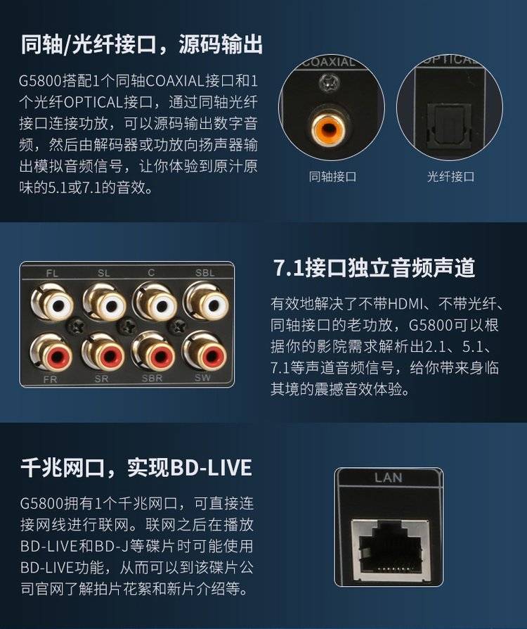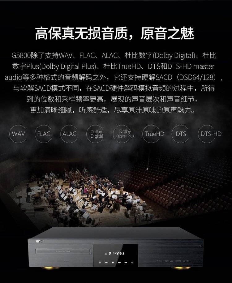 杰科BDP-G5800 4K UHD蓝光播放机dvd影碟机高清硬盘播放器家用HDR
