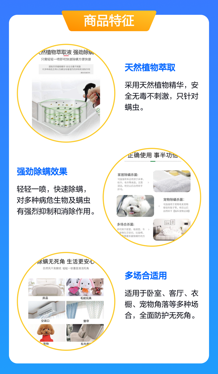 OEM 全屋清洁 宠物环境除螨剂 长效防护抑螨 窗帘除螨清洁