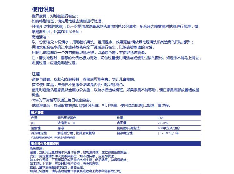丽洁浓缩地毯清洁剂 酒店地垫清洗水 窗帘布艺去污 泰华施5410615