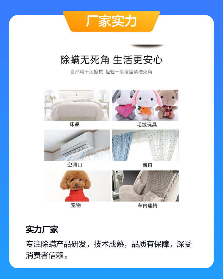 OEM 沙发地毯 天然除螨护理剂 深层除螨抑菌 窗帘除螨清洁