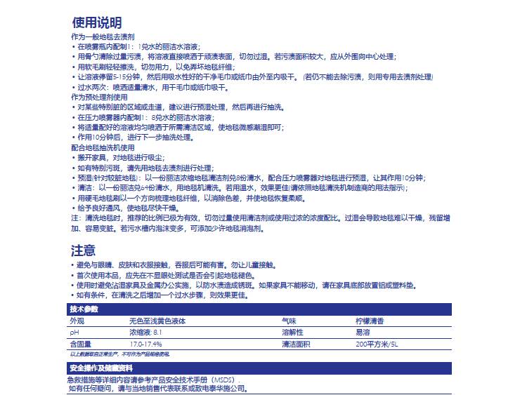 泰华施5404320 丽洁低泡地毯清洁剂 酒店地垫清洁 窗帘布艺杀菌祛污
