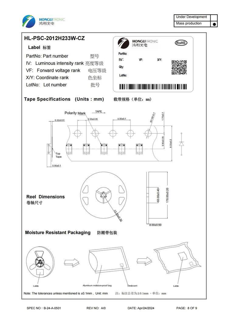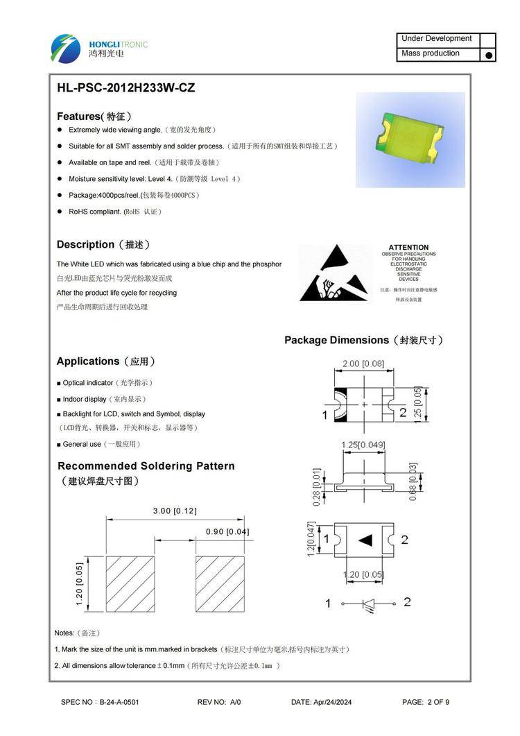 2012(0805)白光 车载产品 色温9000-16000 背光 亮度>1000mcd