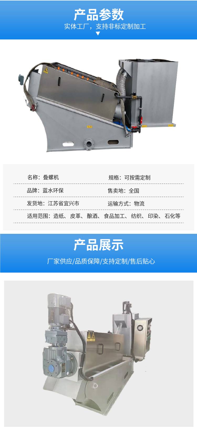 定制城市自来水厂污泥脱水机 生活碟螺式 叠螺机 零件 蓝水环保