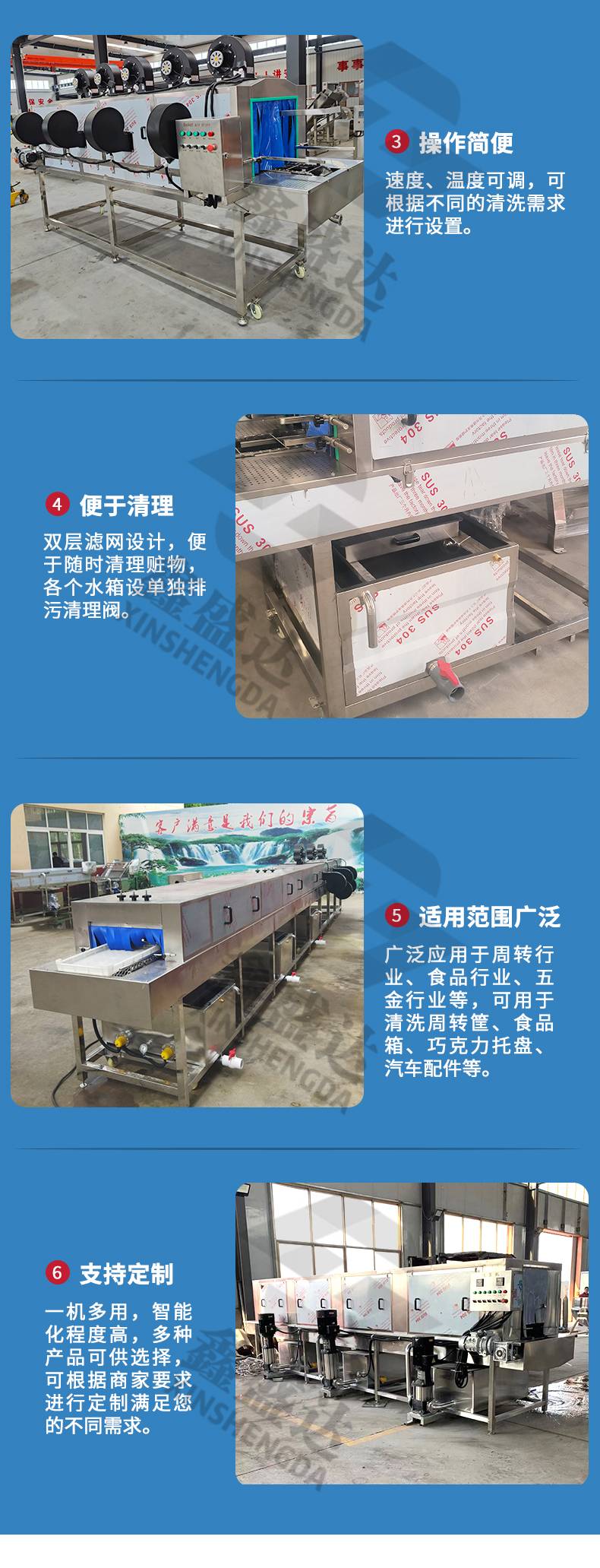 连续式汽车零件分拣筐洗筐机 鸡柳盘子热水冲洗机器 可按需定制