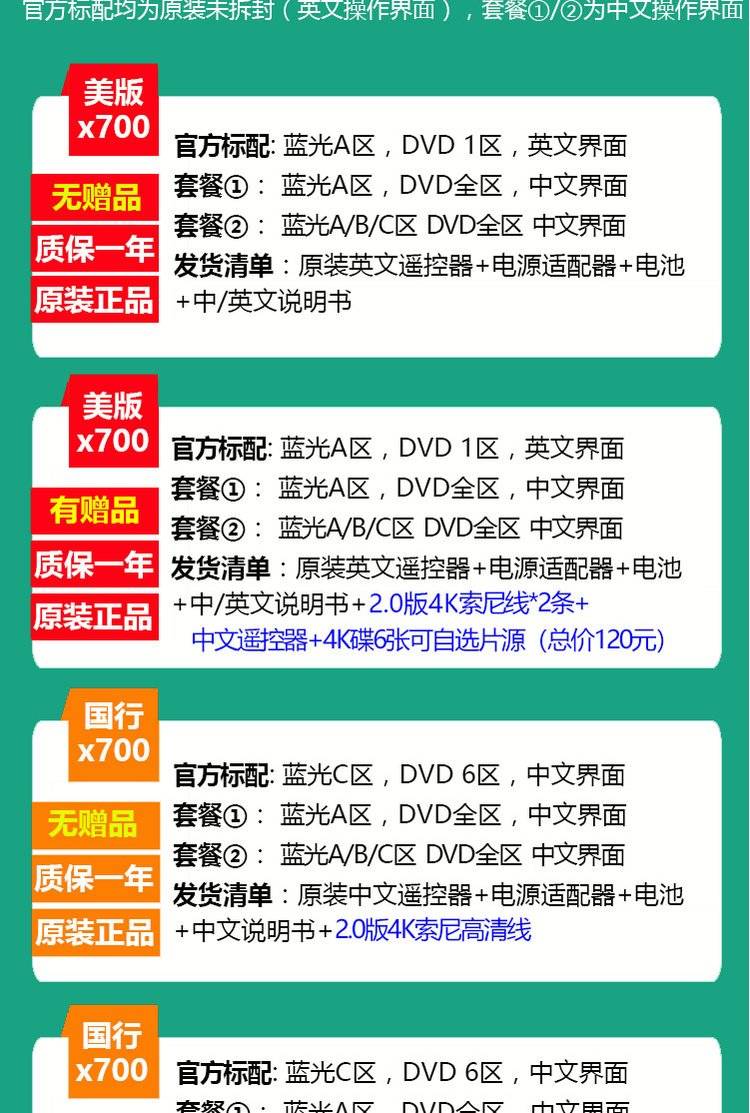 Sony/索尼UBP-X700 X800M2 4K UHD高清蓝光机3D播放机DVD影碟机