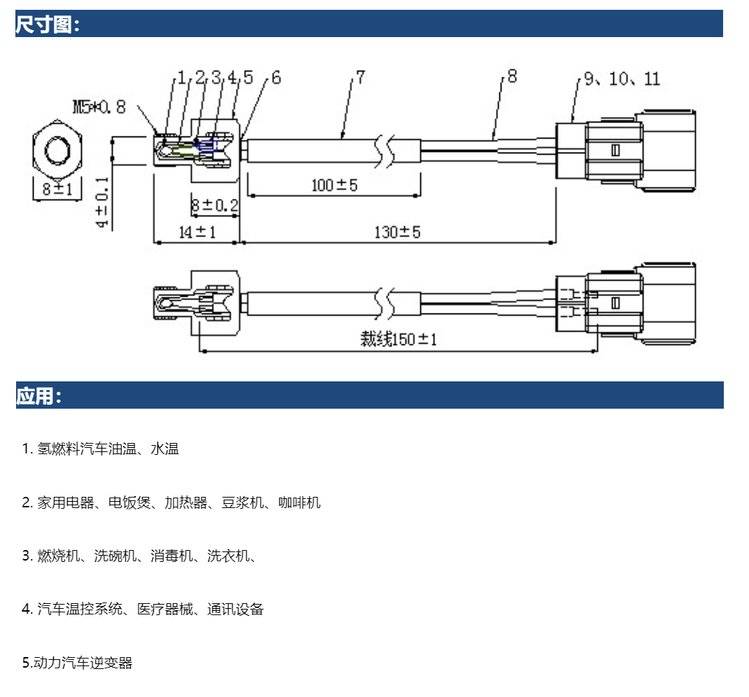 铁氟龙耐高温套管氢燃料汽车用高防油水温油温NTC温度传感器
