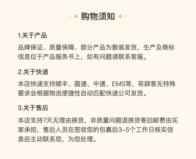 特别提示:商品详情页中(含主图)以文字或者图片形式标注的抢购价等价格可能是在特定活动时段下的价格,商品的具体价格以订单结算页价格为准或言是您与商家联系后协商达成的实际成交价格为准;如您发现活动商品价格或活动信息有异常,建议购买前先咨询商家。