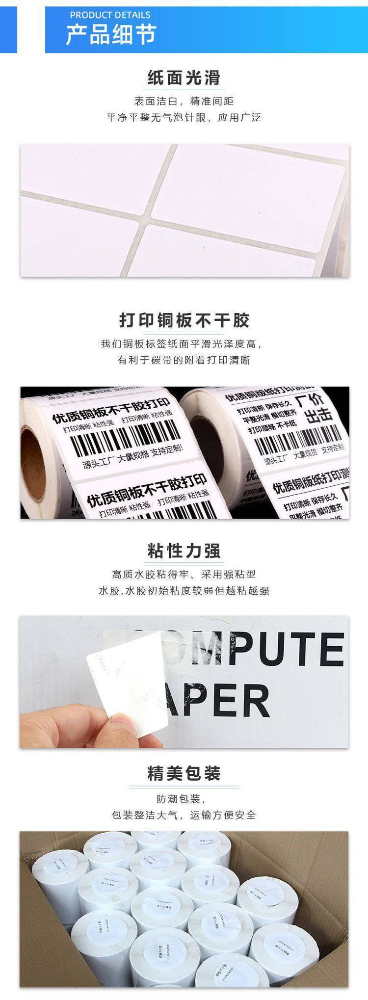 领域 铜版标签纸不干胶 驿站超市收银系统标签条码纸 打印字迹清晰