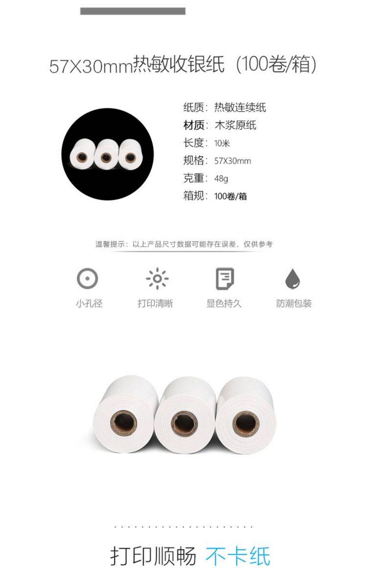 SNBC新北洋收银纸58mm热敏打印纸57x50厨房外卖收款机超市小票纸