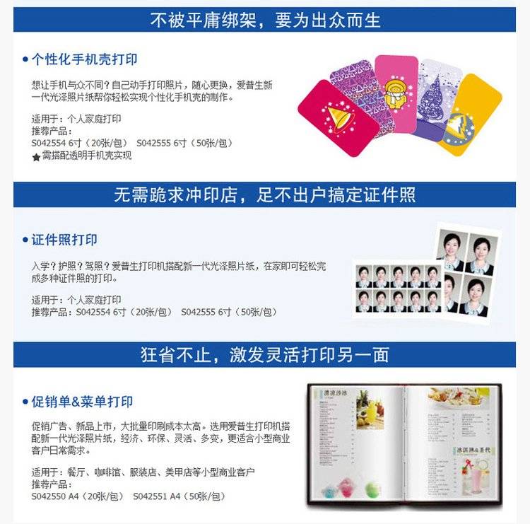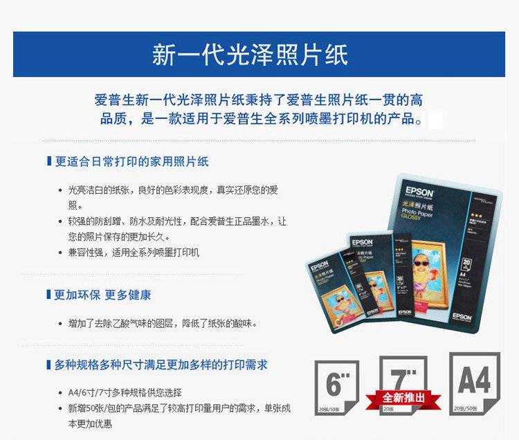 爱普生epson原装喷墨照片纸 4*6寸鲜艳健康环保 高质量光泽相片纸