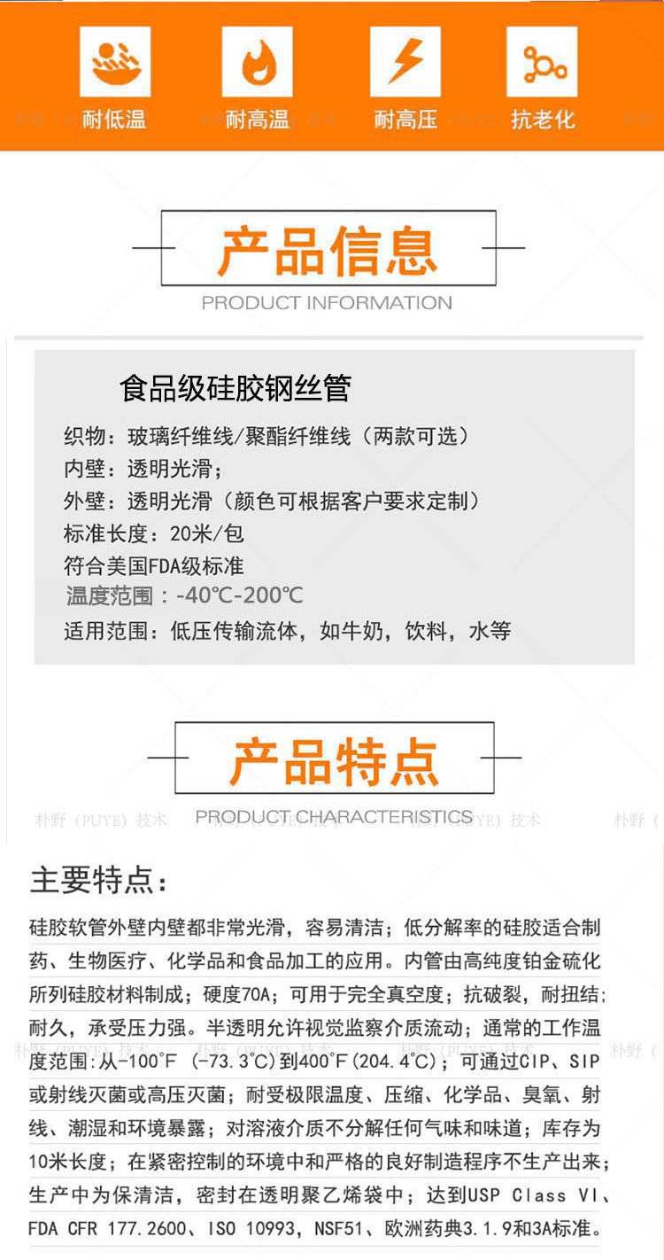 卫生级丝制食品级硅胶钢药软管 钢丝食品软管耐高温耐压硅胶软管
