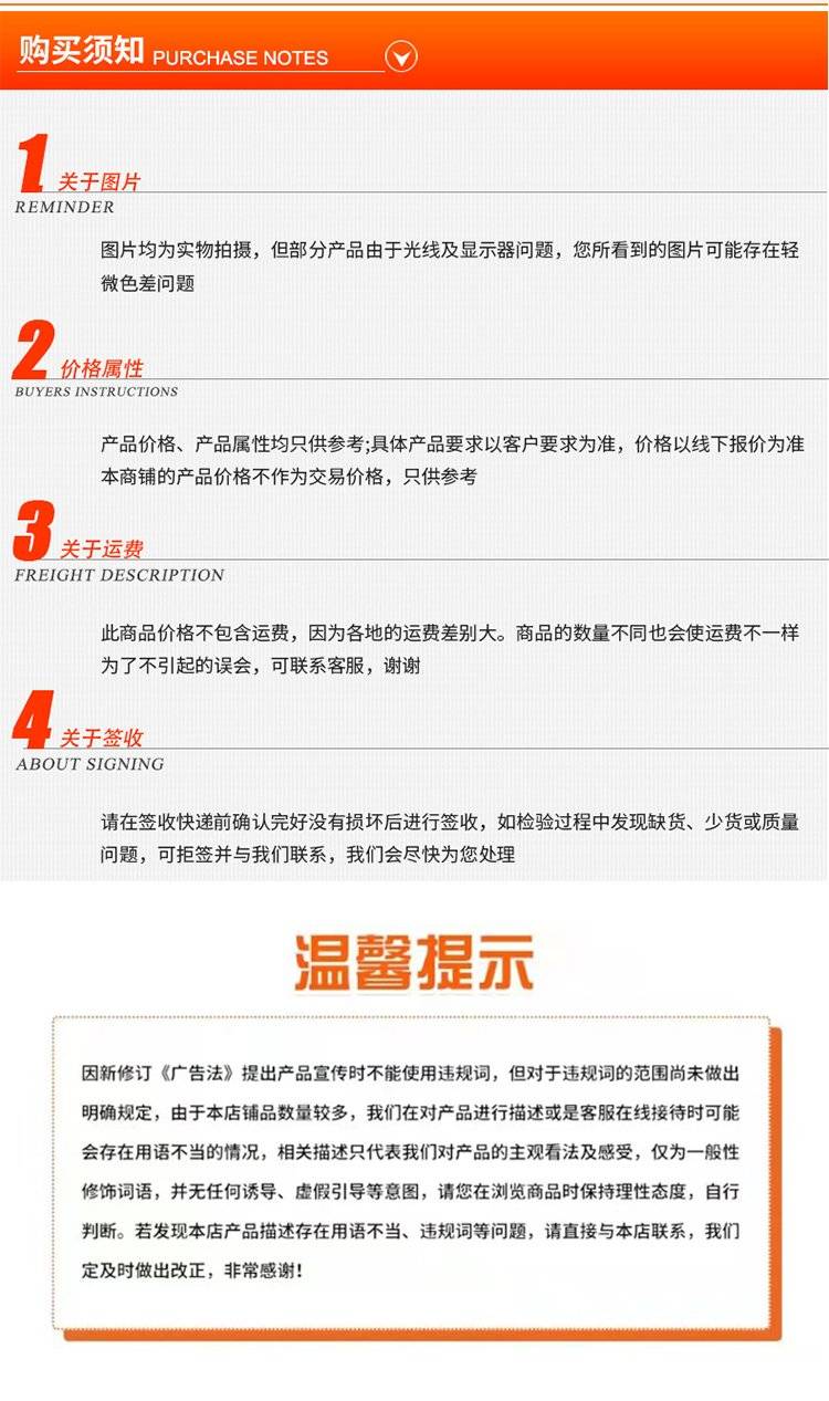 特别提示:商品详情页中(含主图)以文字或者图片形式标注的抢购价等价格可能是在特定活动时段下的价格,商品的具体价格以订单结算页价格为准或言是您与商家联系后协商达成的实际成交价格为准;如您发现活动商品价格或活动信息有异常,建议购买前先咨询商家。