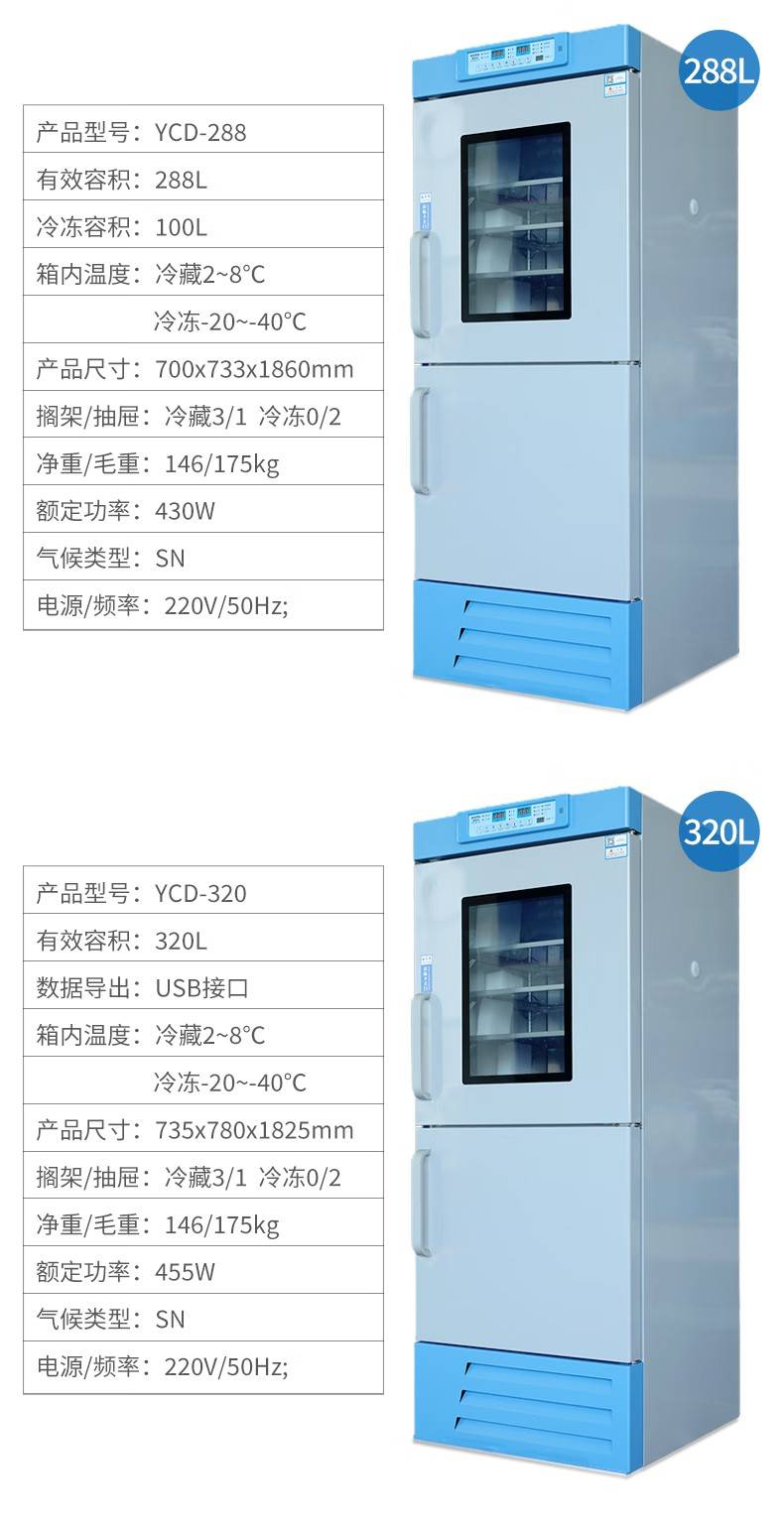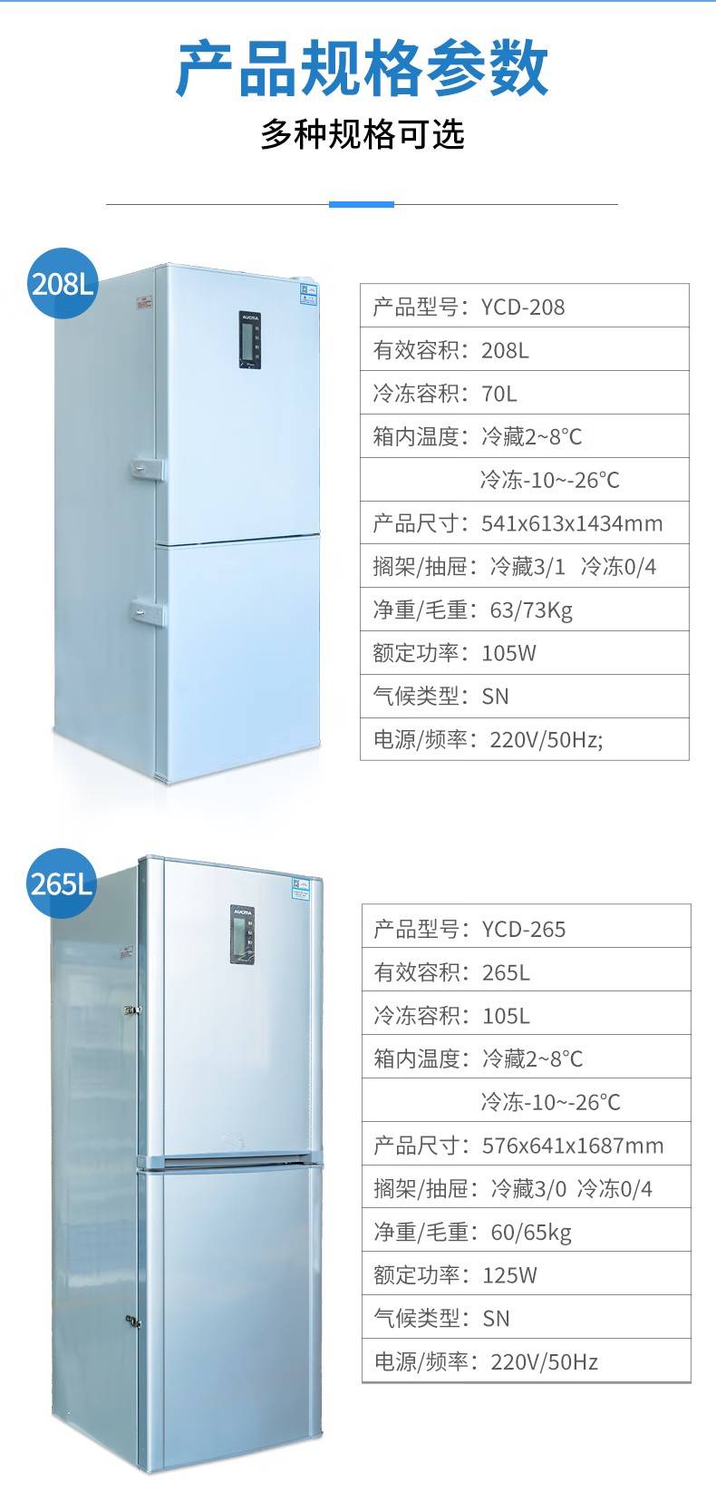 澳柯玛YCD-208 冷藏冷冻箱一体 双温双区 立式冷藏柜 冷冻实验室冰箱